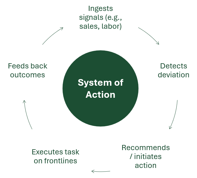 Retail sits at the center of this opportunity. AI in retail operations is now moving beyond analytics into frontline execution, enabling systems of action that coordinate and perform work historically handled exclusively by human labor.